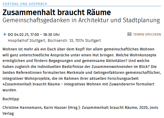 Online-Vortrag und Gespräch im Hospitalhof am 04.02.21