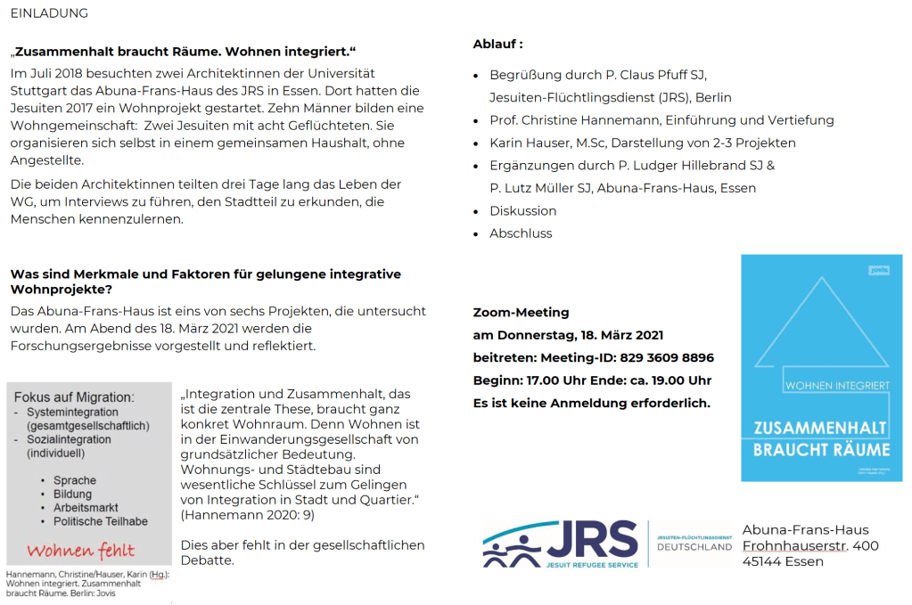 Derzeit erforschen Studierende des Seminars „Integration durch Wohnen?!“ am Fachgebiet Architektur- und Wohnsoziologie der Universität Stuttgart einige dieser Wohnprojekte. Die Erkenntnisse werden im Frühjahr 2020 hier veröffentlicht.