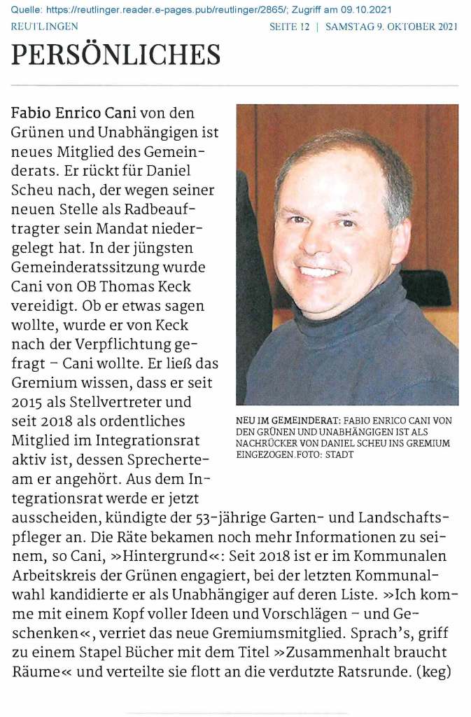 Reutlinger Zeitung | Neu im Gemeinderat | 09.10.2021