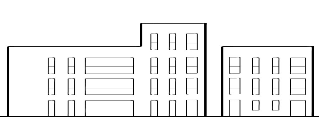 Architektur und Nutzung, Umbau von 3 Gebäuden zu einem Büro- und einem Wohngebäude