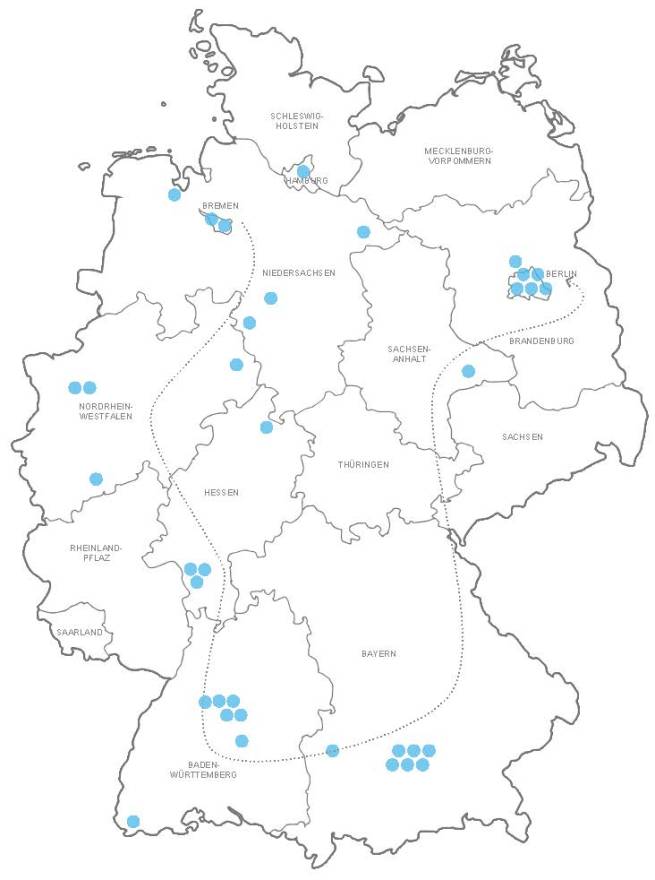 Begeben Sie sich mit uns auf eine Deutschlandreise von Hamburg nach Berlin über Essen, Stuttgart, München und Dessau-Roßlau. Alle 36 Projekte werden hier kurz vorgestellt (klicken Sie einfach auf die Fotos) und nach sechs sozialen und architektonischen Kriterien bewertet: